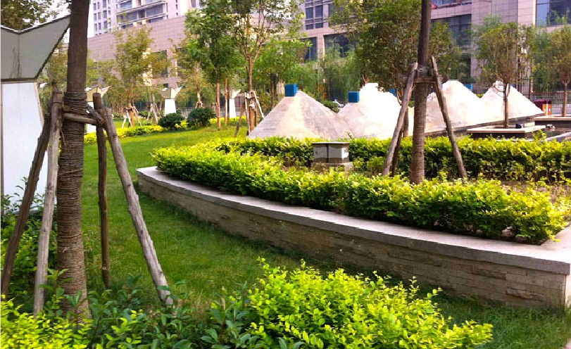 該小區(qū)結(jié)合現(xiàn)代國際先進(jìn)的設(shè)計(jì)理念,是景觀風(fēng)格與建筑的和諧統(tǒng)一,各種形式的水景,增加小區(qū)活力;植物景觀以當(dāng)?shù)刂参餅橹鳎嵘参锍苫盥剩訌?qiáng)人們的歸屬感。