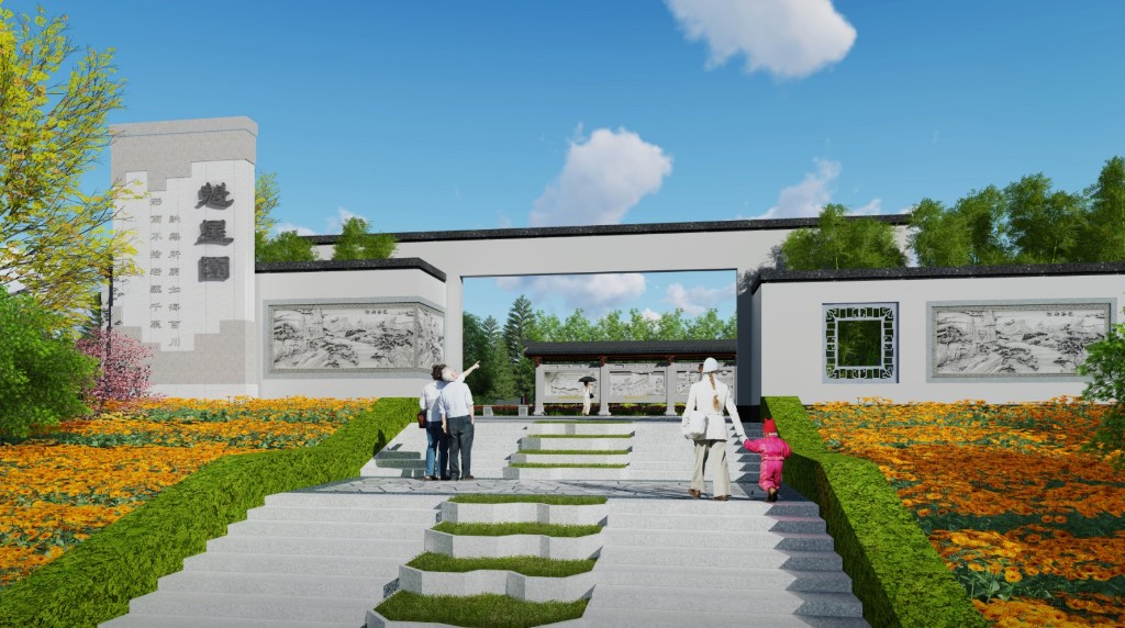 以春秋戰(zhàn)國的歷史故事,“君何患焉?若闕地及泉,遂而相見,其誰曰不然”“大隧之中,其樂也融融”的孝道精神為設(shè)計切入點,同時體現(xiàn)五常之“仁、義、禮、智、信”的品德理念 , 傳播華夏文化之精髓。汲取其中元素,層層流暢的弧線植入到本次設(shè)計,形成曲徑通幽的環(huán)路。展現(xiàn)一個流動自然、同時具有文化底蘊的游園。