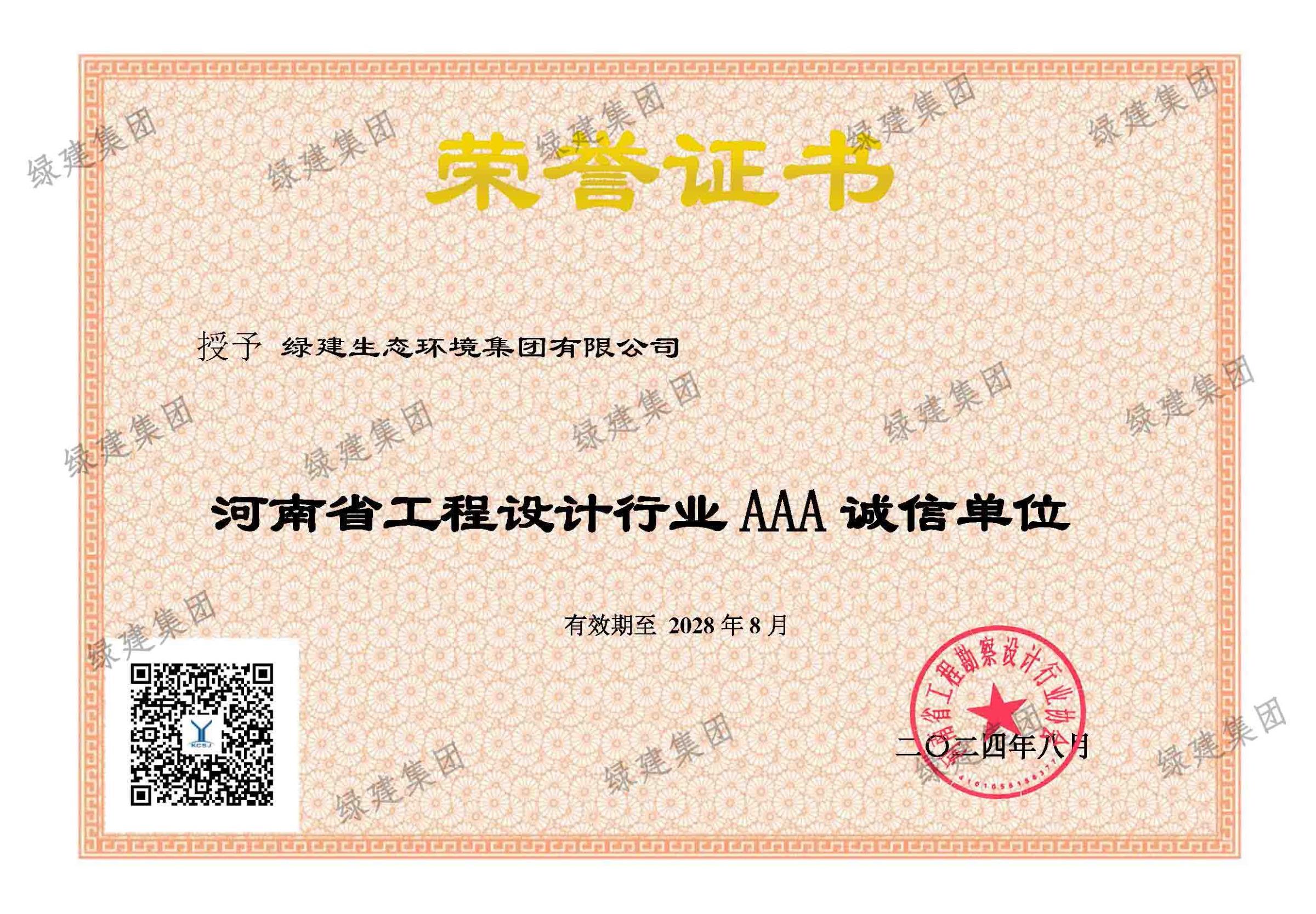 河南省工程設計行業(yè)AAA誠信單位