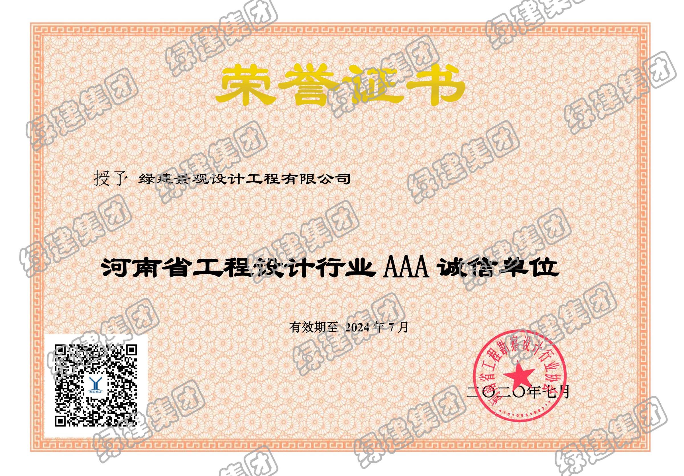 河南省工程設(shè)計(jì)行業(yè)AAA誠(chéng)信單位